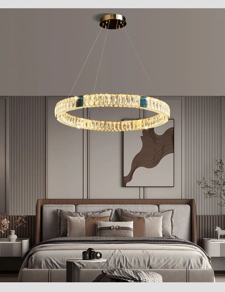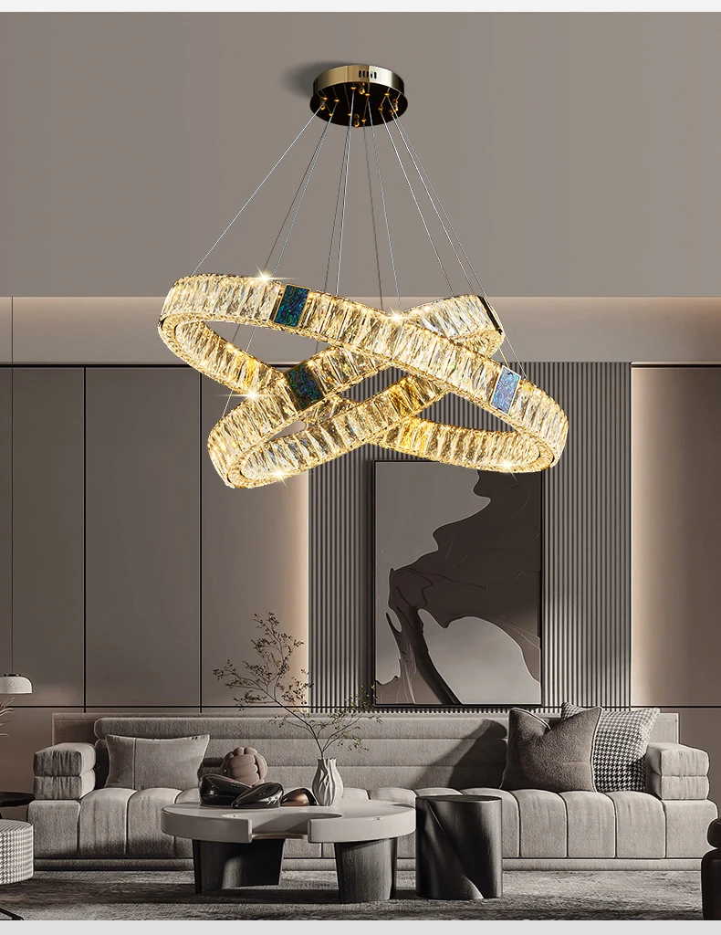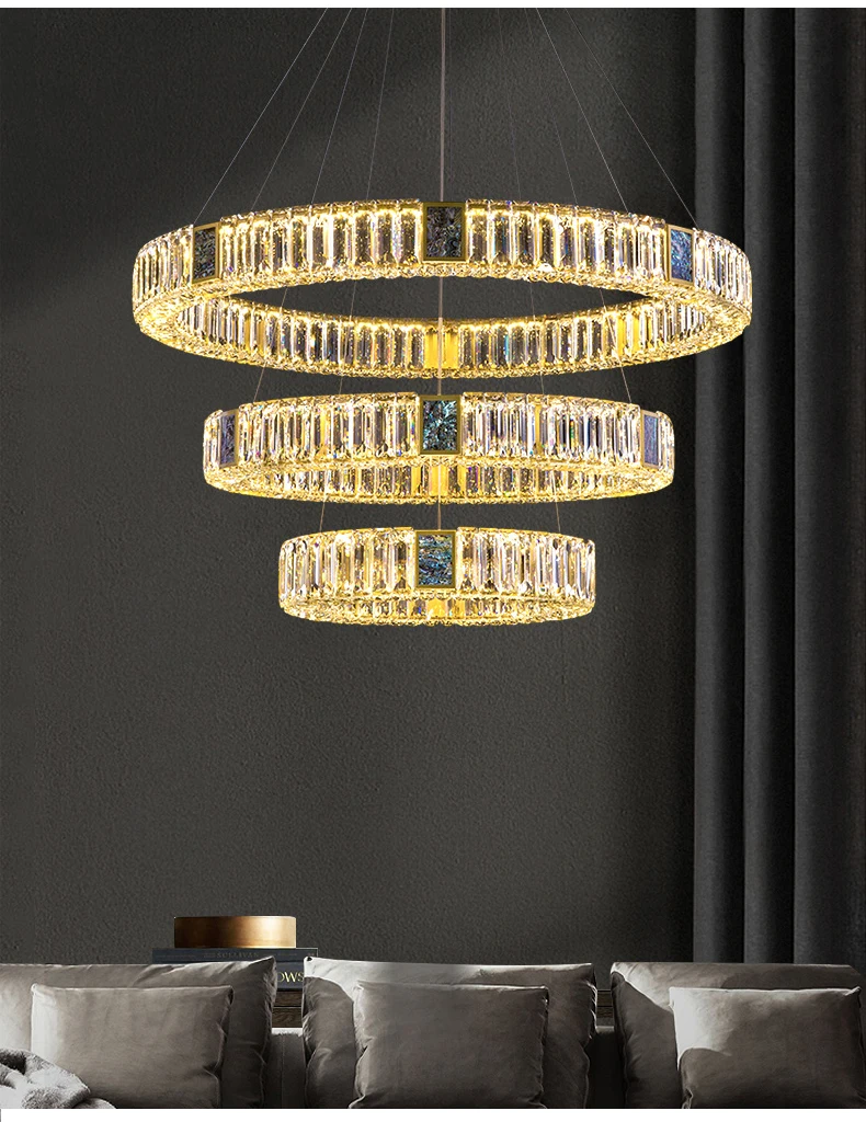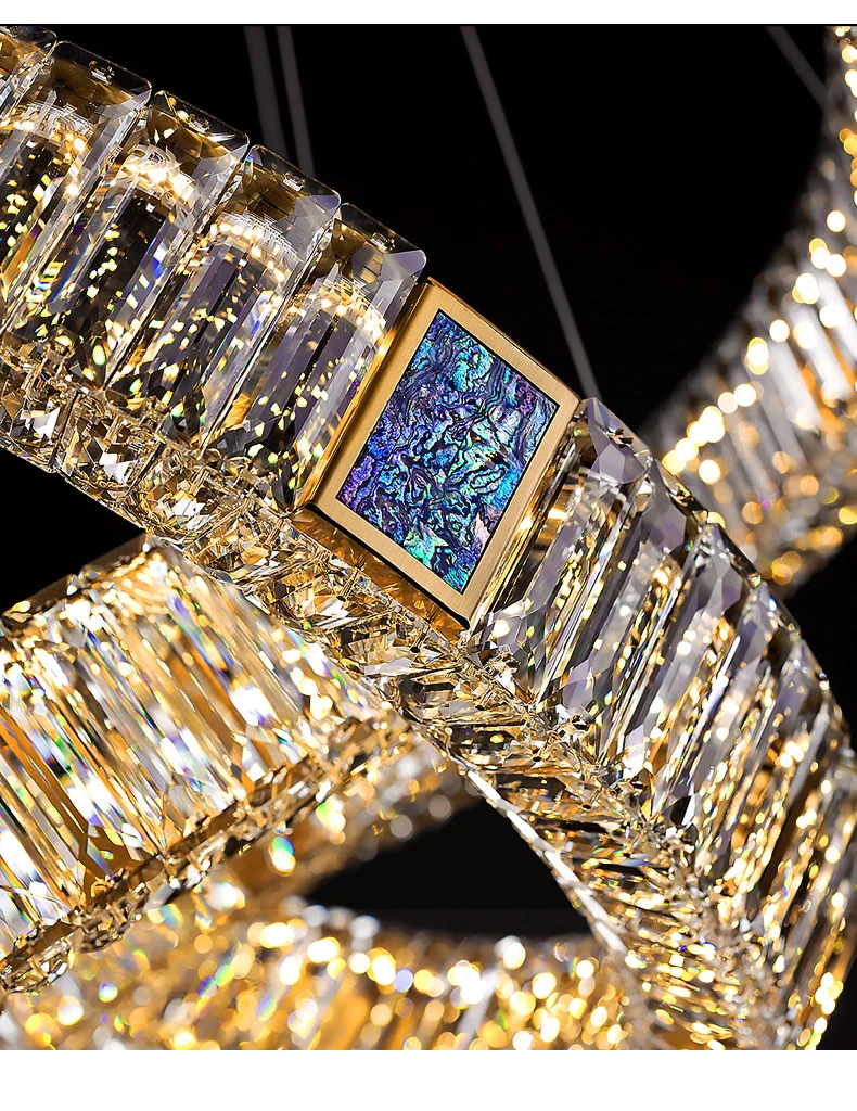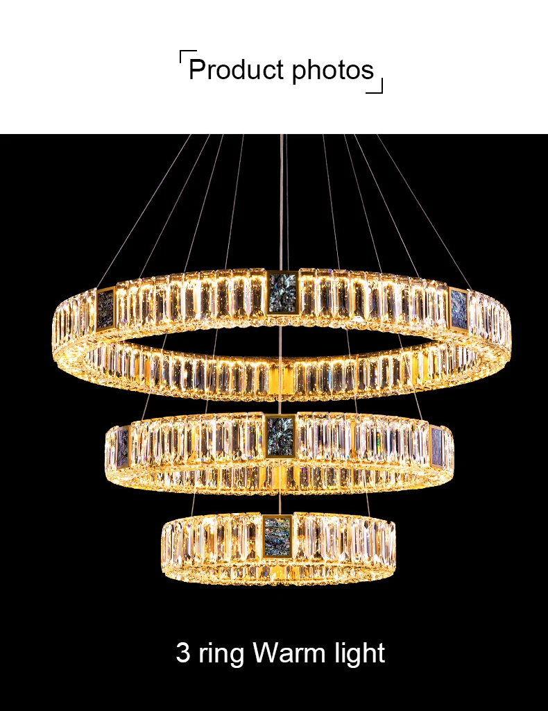 1..Name: 2023 New Nordic Modern Minimalist Light Luxury Dining Room Circular Shell Led Chandelier Living Room Light Crystal Chandelier