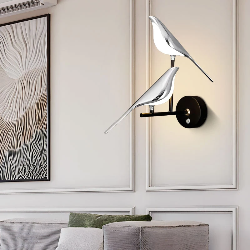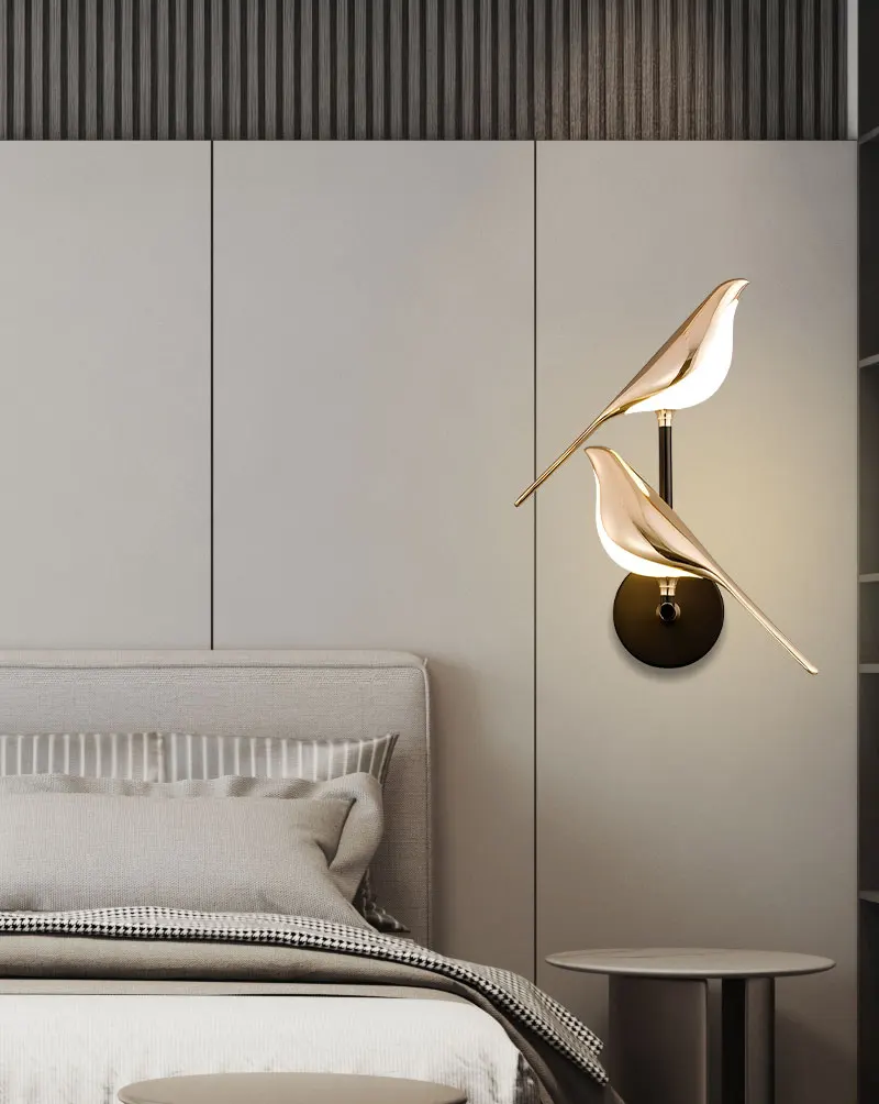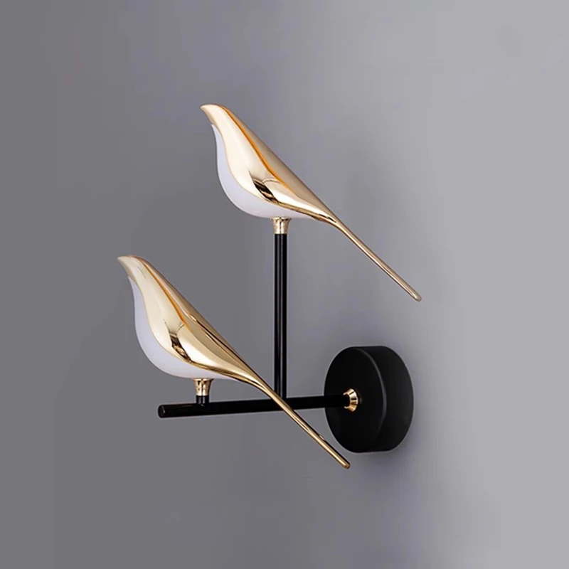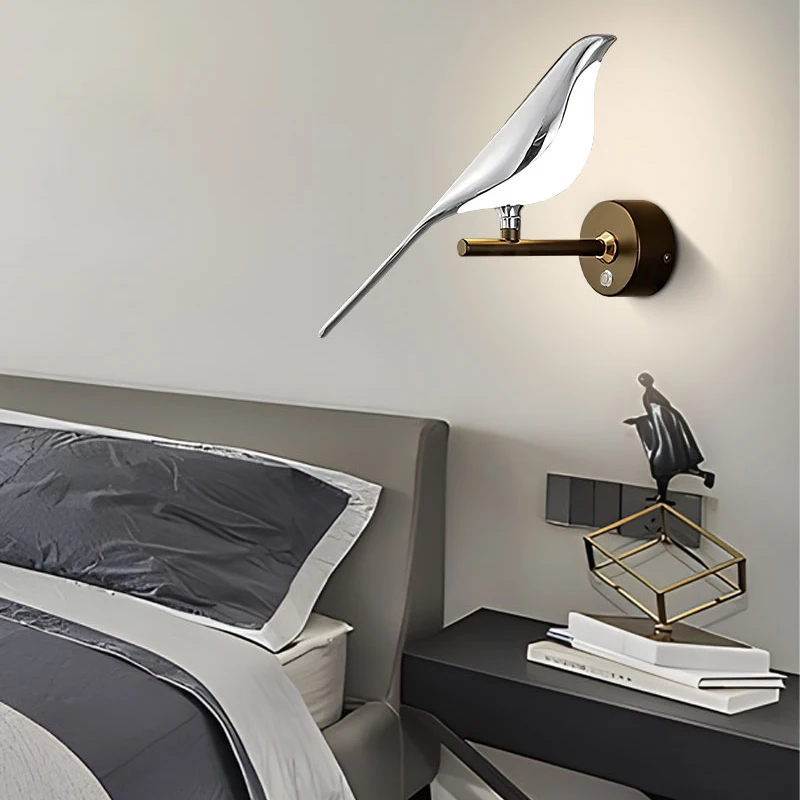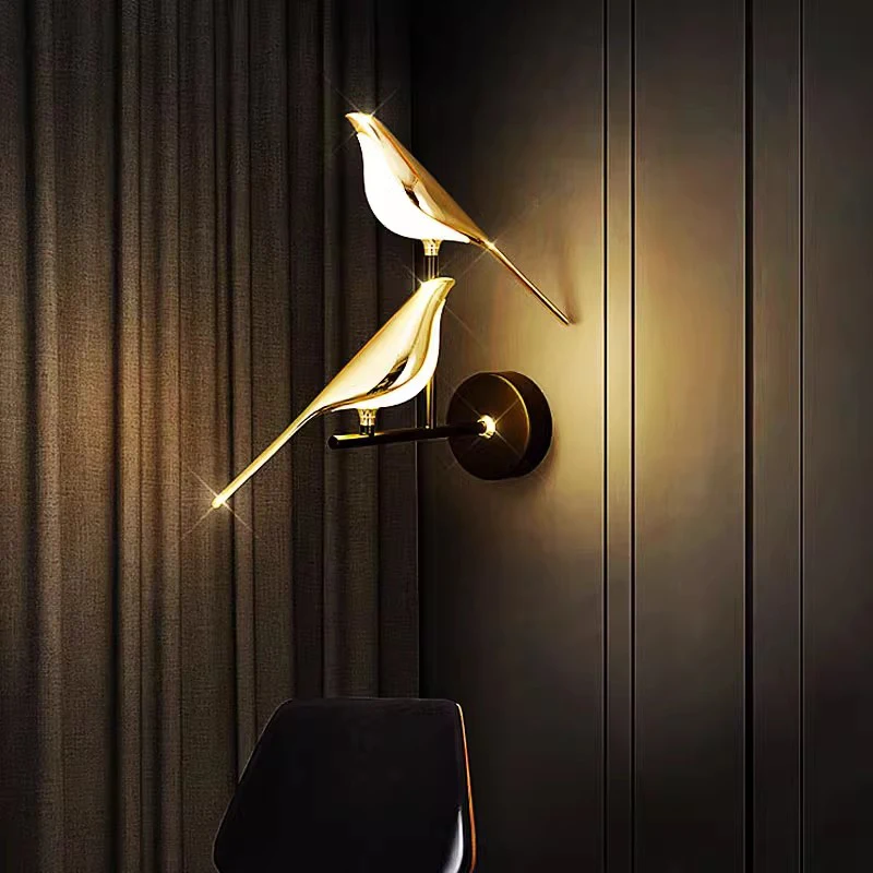 Nordic LED Golden Silver Bird Wall Lamps with Touch Switch Dimming Parlor Bar Bedside