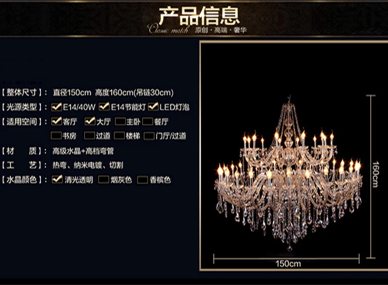 Lamp size: Diameter about 140 cm*Height 160 cm+chains size 30 cm height