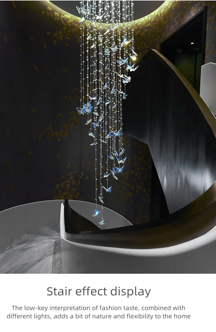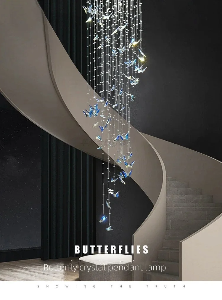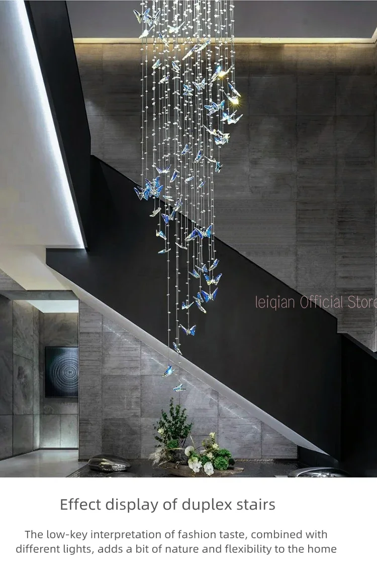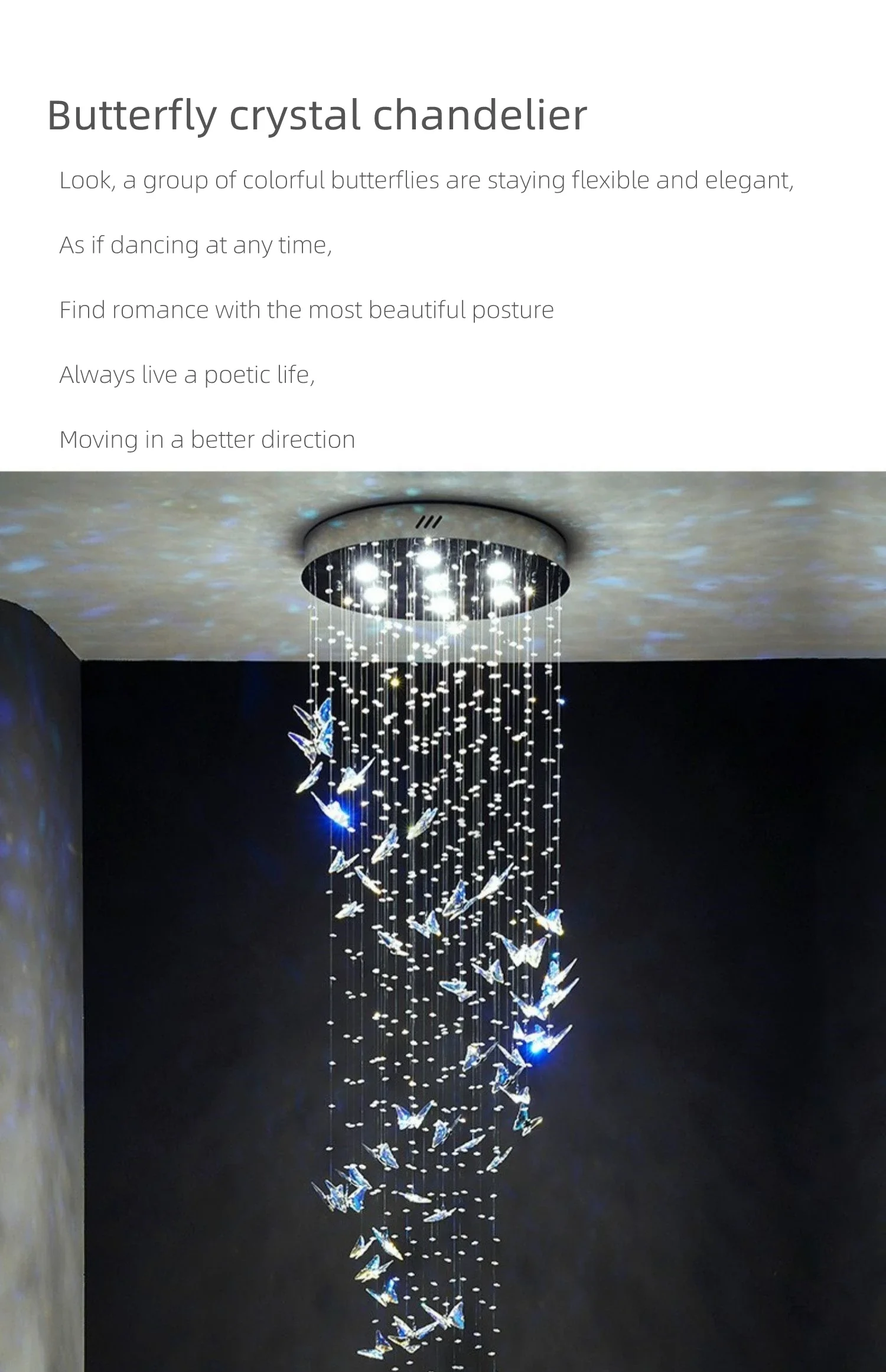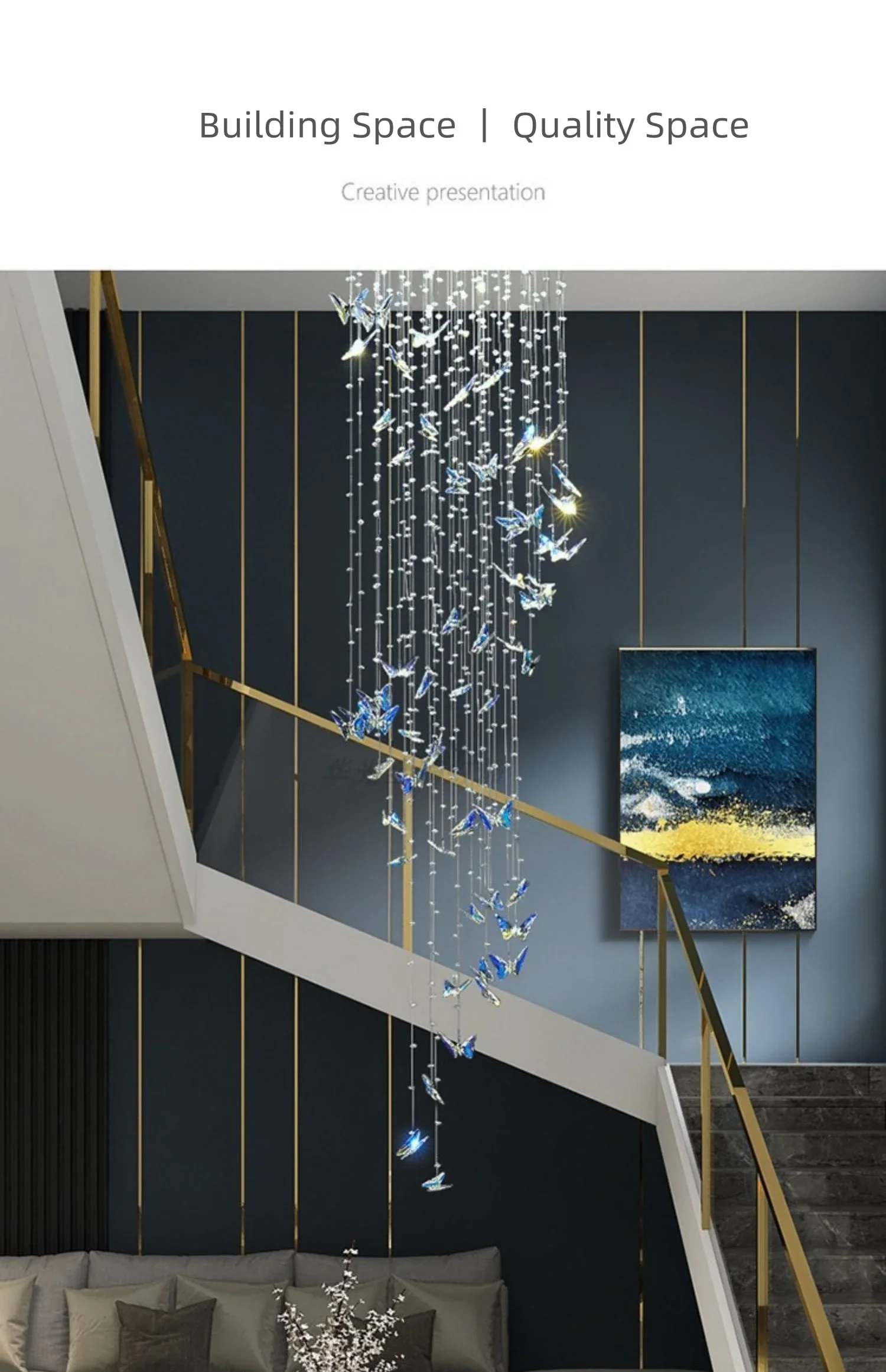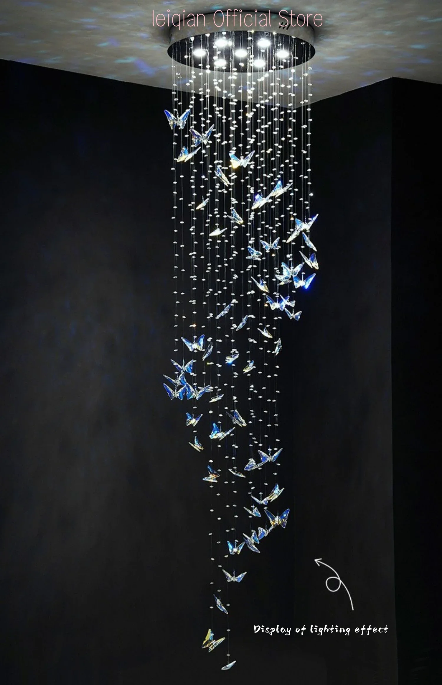 Modern K9 Crystal Butterfly Chandelier Staircase High Ceiling Pendant lights intdoor lighting decoration Large High-grade