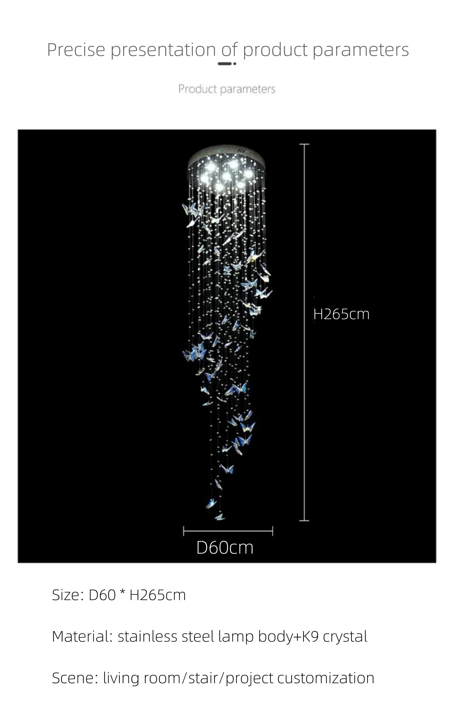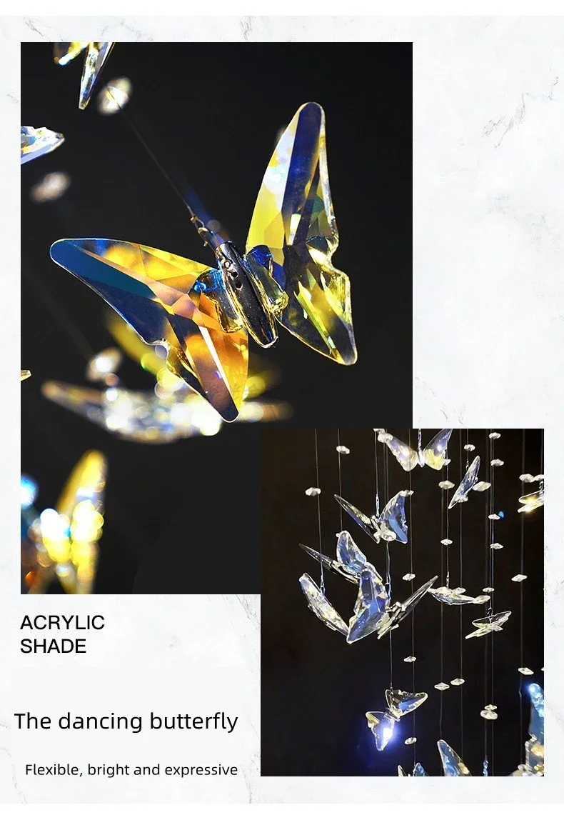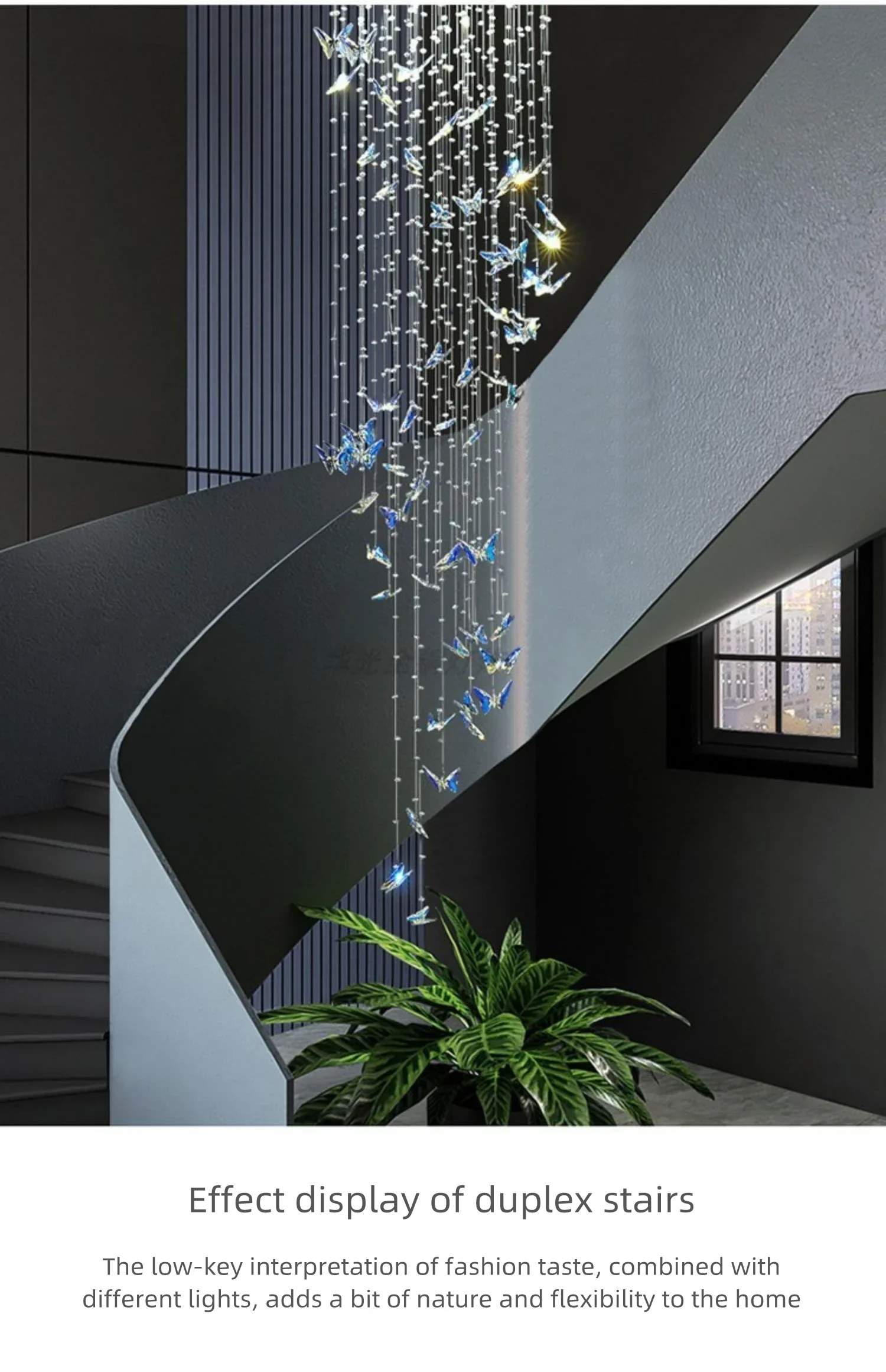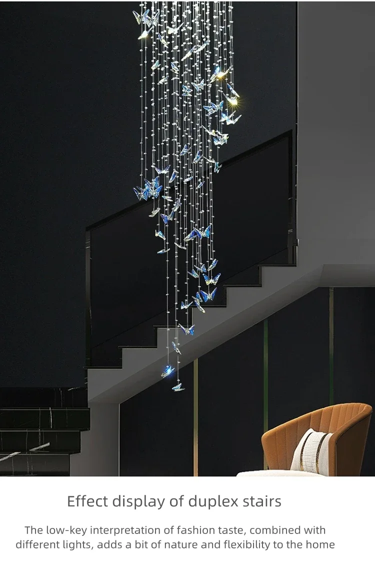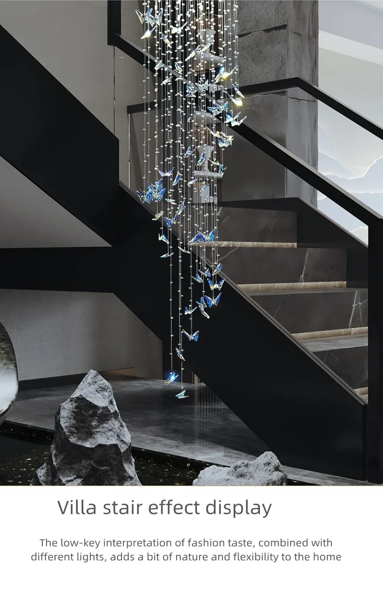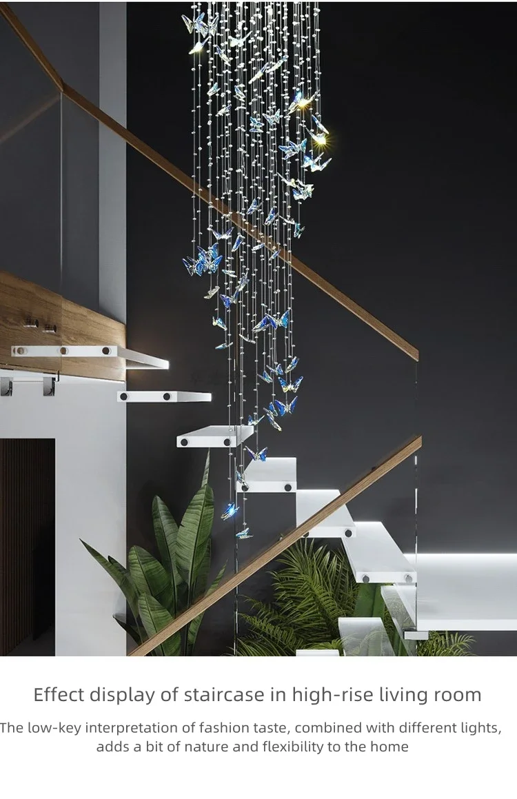 Modern K9 Crystal Butterfly Chandelier Staircase High Ceiling Pendant lights intdoor lighting decoration Large High-grade
