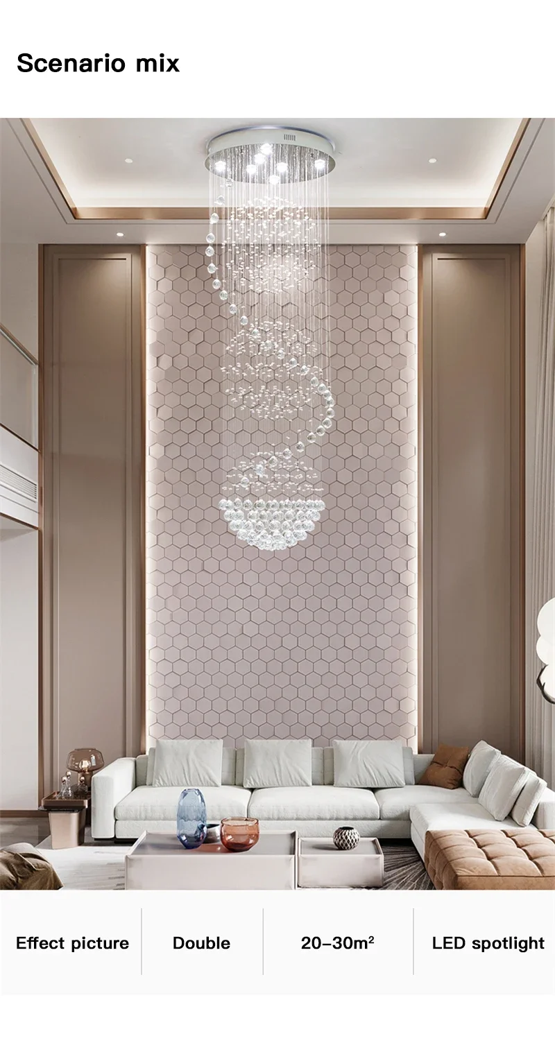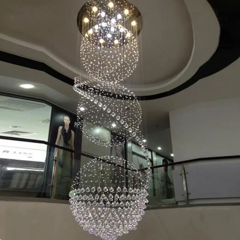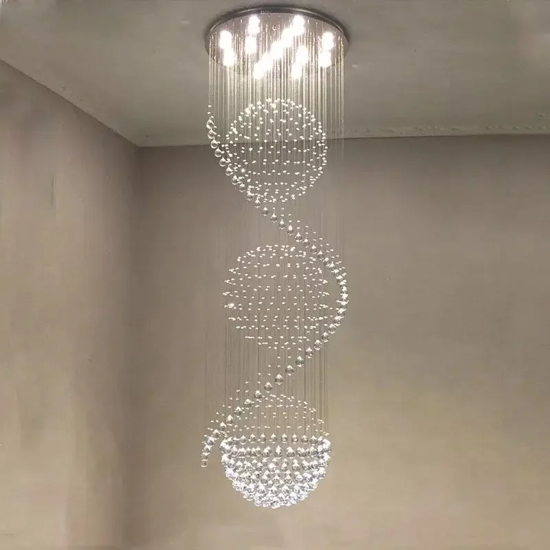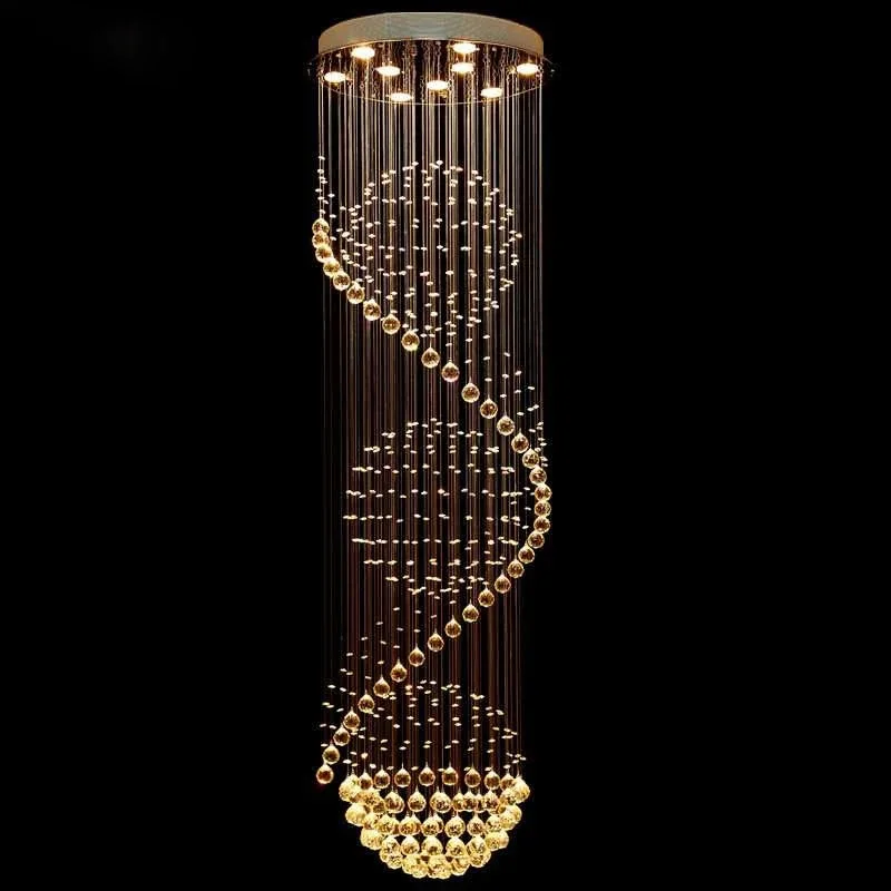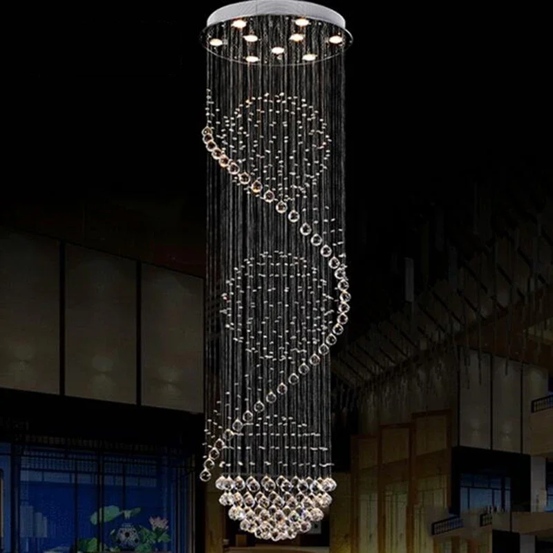 Modern LED Spiral Living Crystal Chandeliers Lighting Indoor Long Fixture for Staircase Stair Lamp Showcase Bedroom Hotel Hall