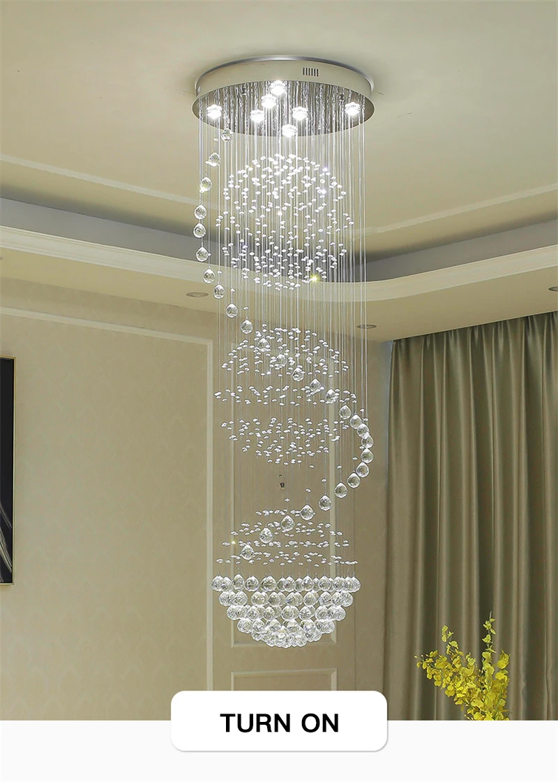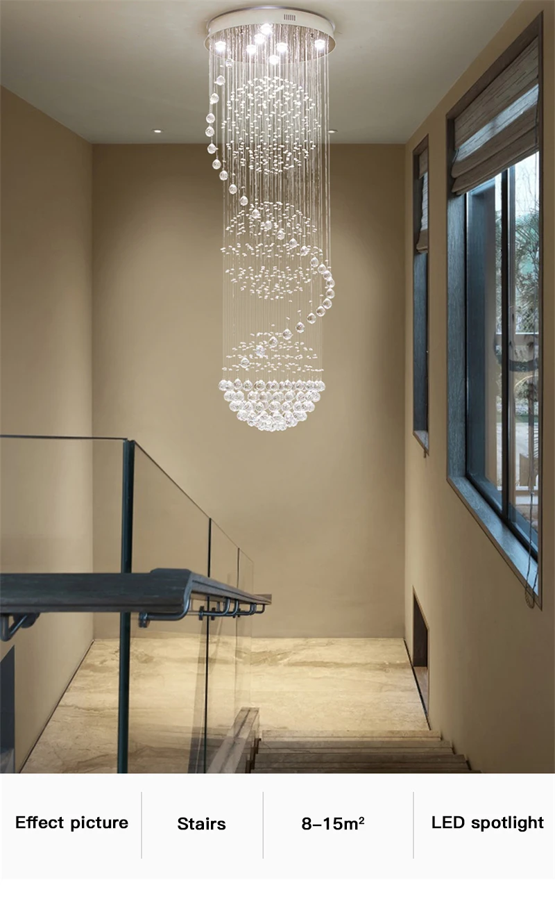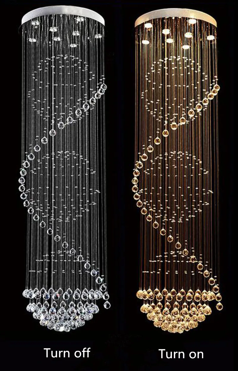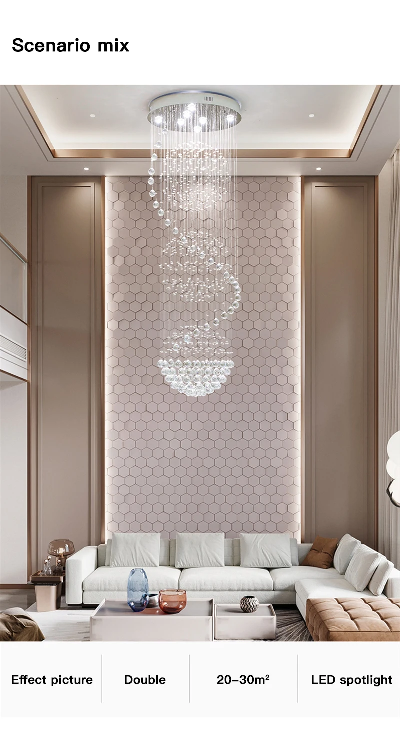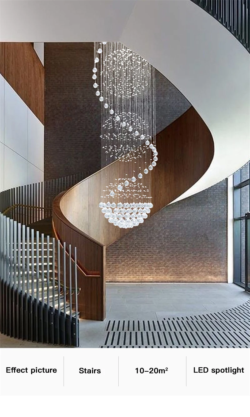 Modern Long LED Spiral Living Crystal Chandeliers Lighting Indoor Fixture for Staircase Stair Lamp Showcase Bedroom Hotel Hall