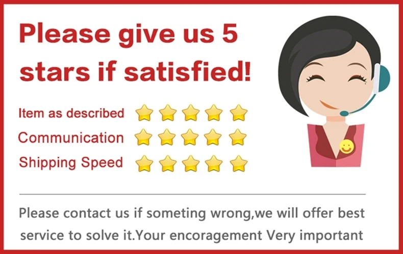 please give us 5 stars. For return,5 stars with comment equal to $2 coupon If there are any problems with your order,