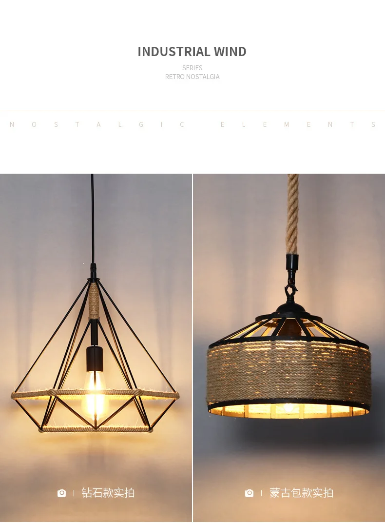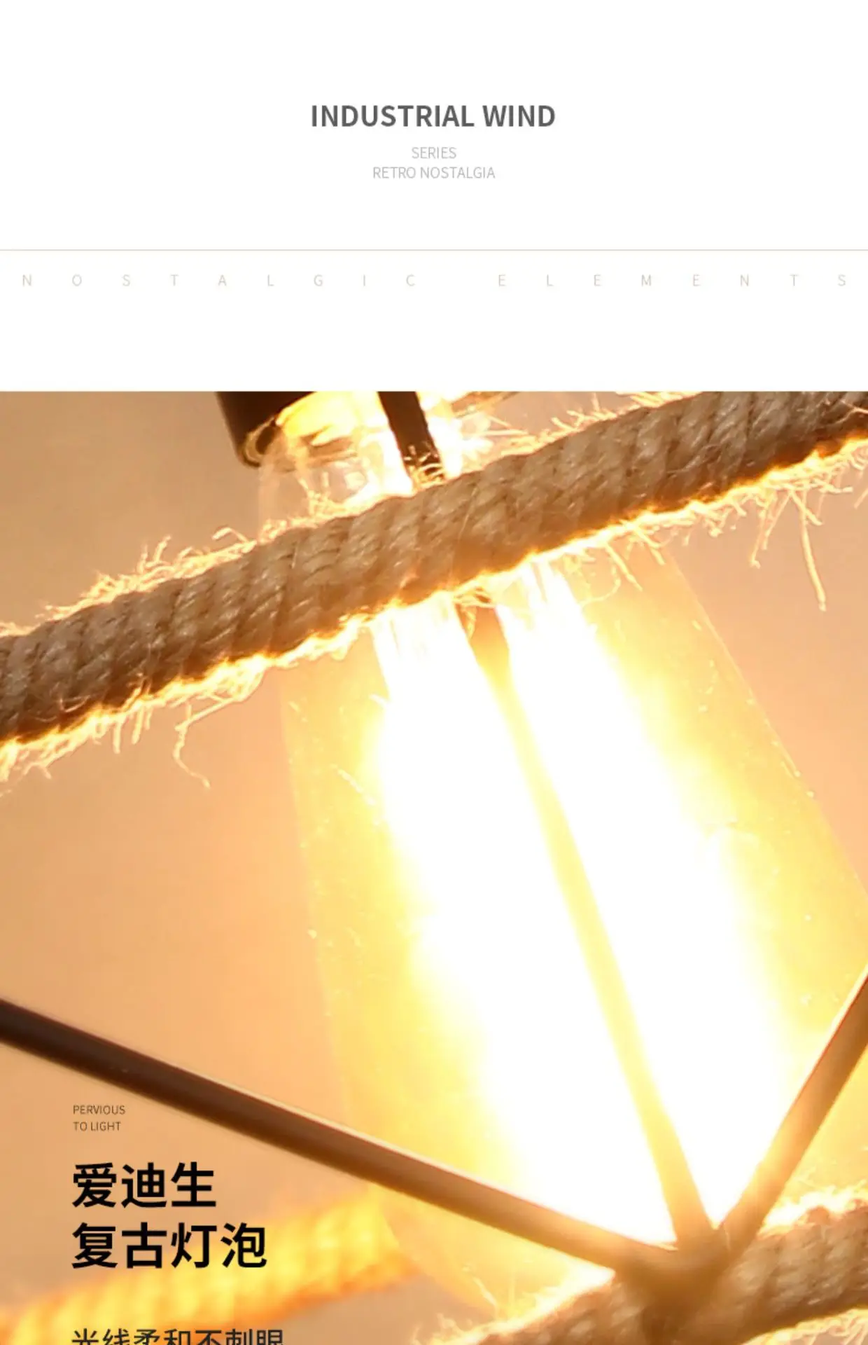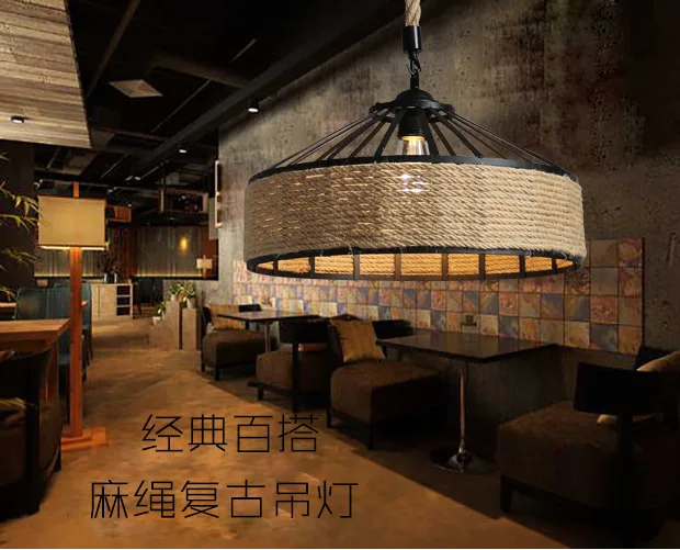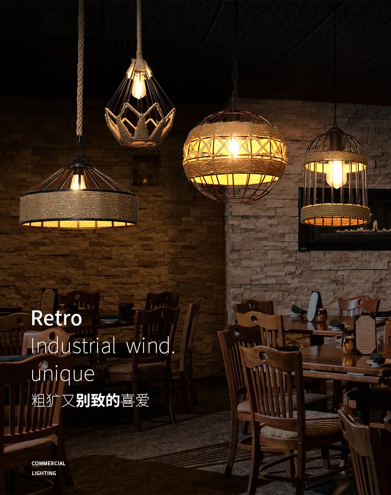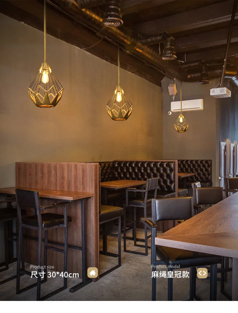 美式乡村麻绳吊灯服装店复古工业风个性创意餐厅网咖啡厅酒吧台灯