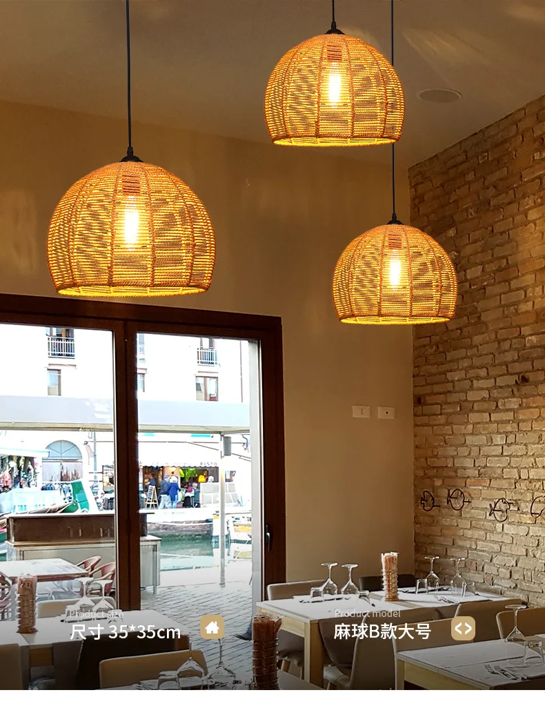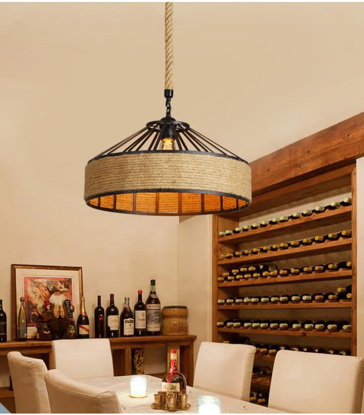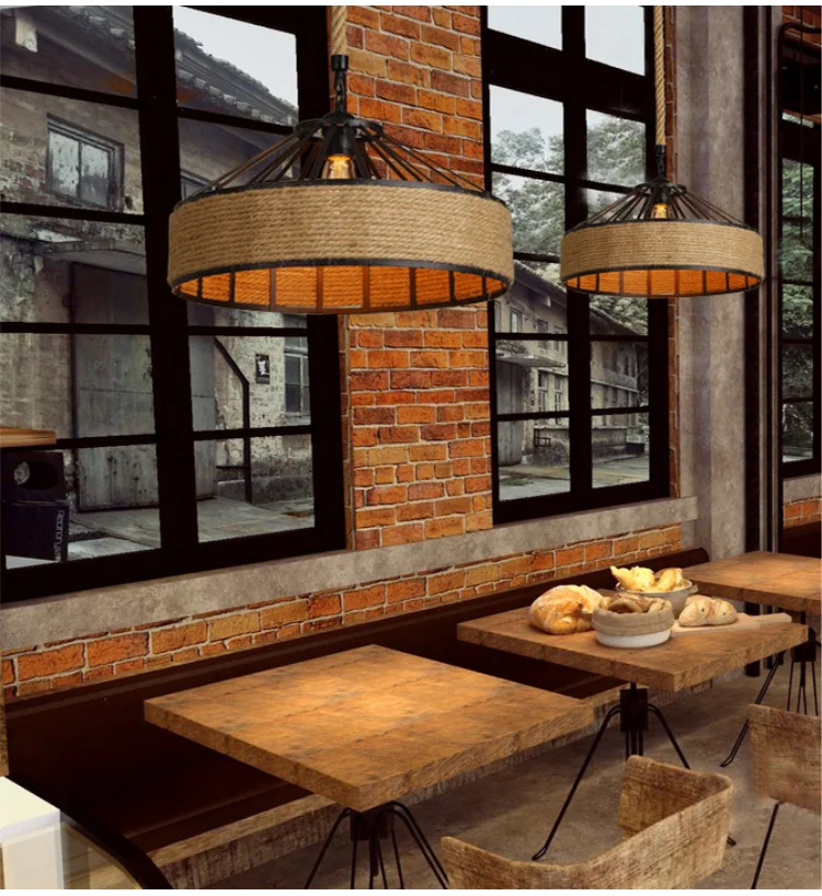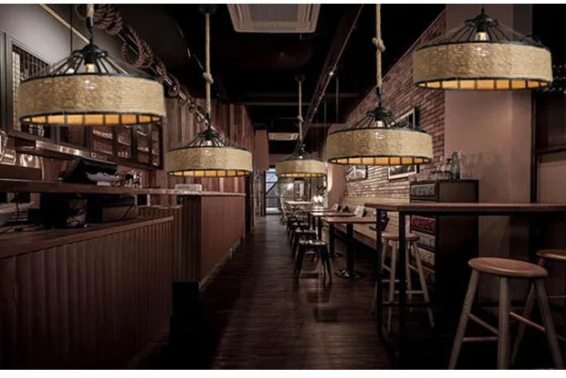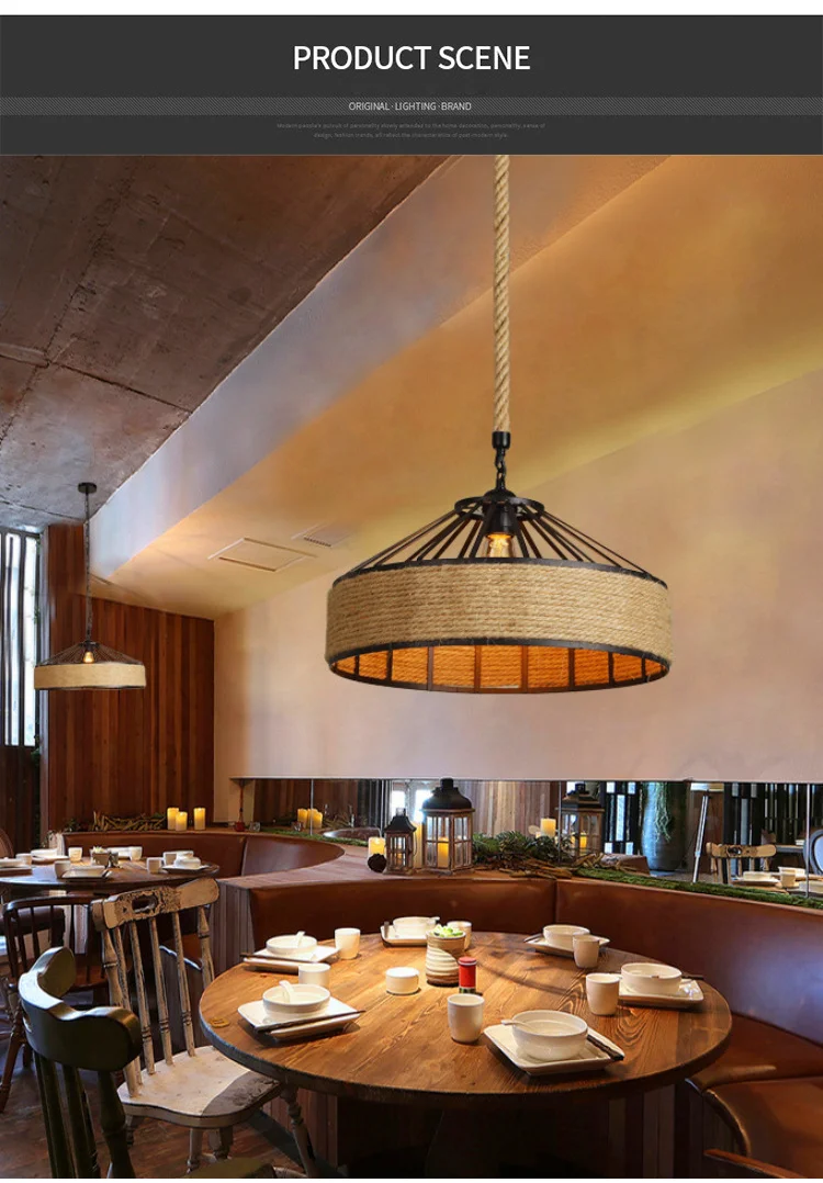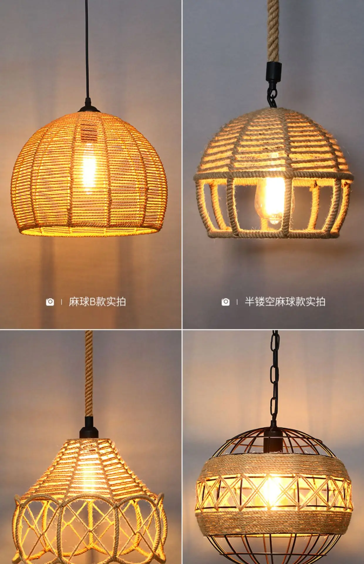 美式乡村麻绳吊灯服装店复古工业风个性创意餐厅网咖啡厅酒吧台灯